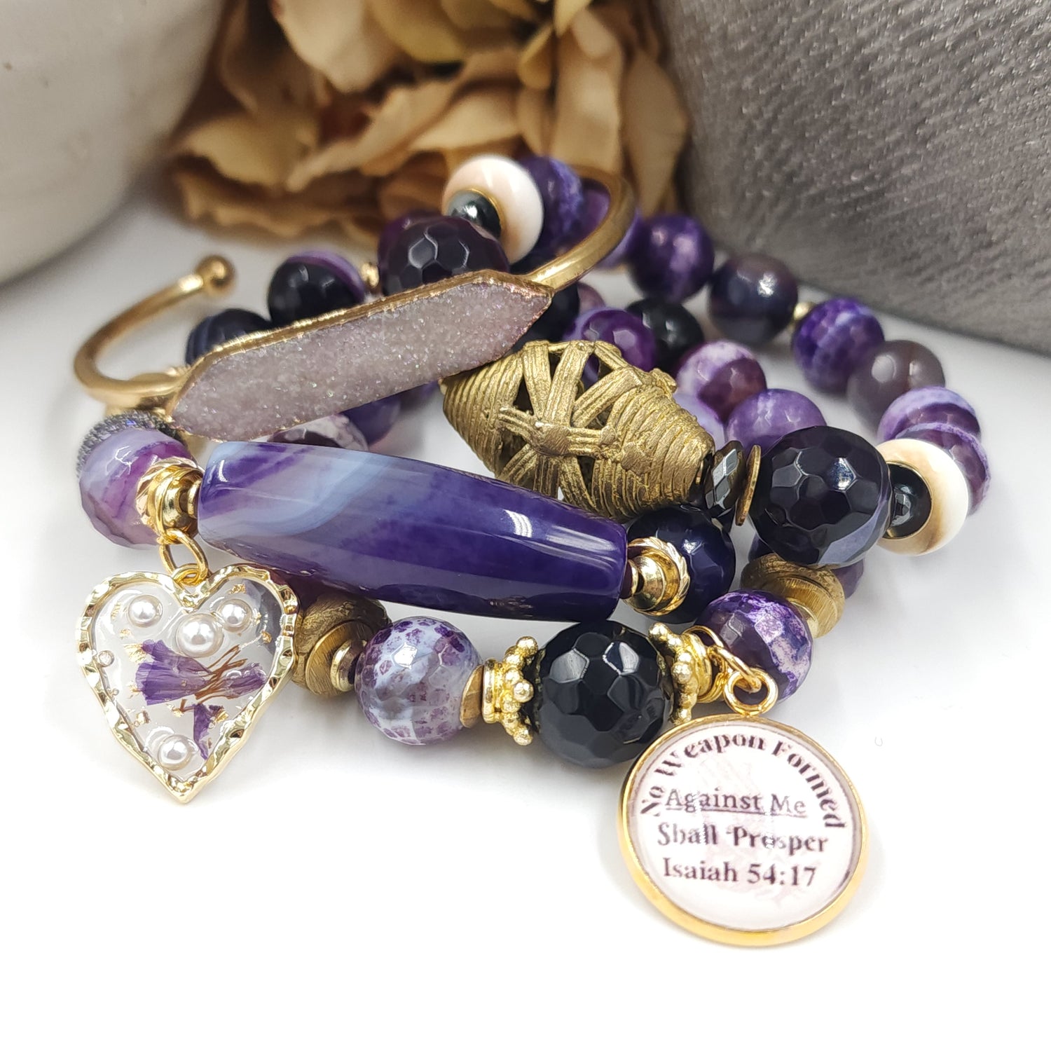 This beautiful stacked set is currently available. Each bead was handpicked to create a unique, eye catching design.