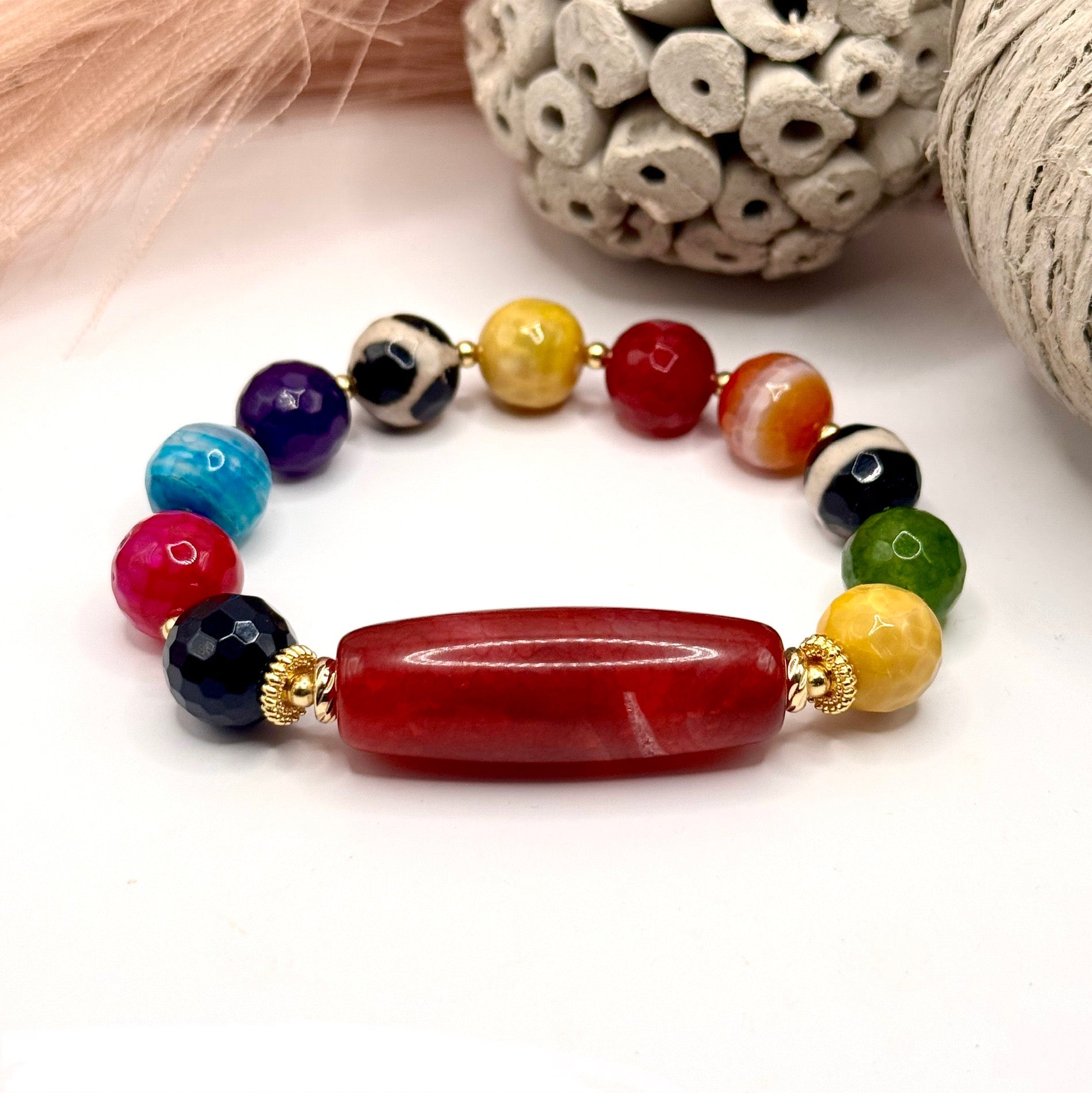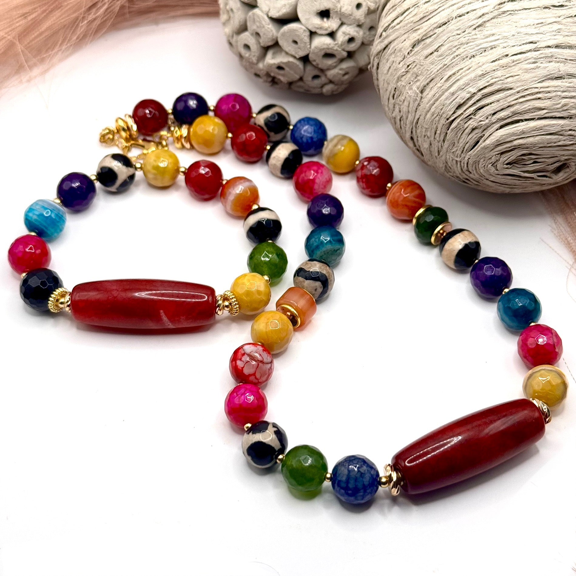 This listing is for 1 mixed Agate bracelet made with 12mm beads. Beautifully crafted, it pairs perfectly with the Floral necklace.