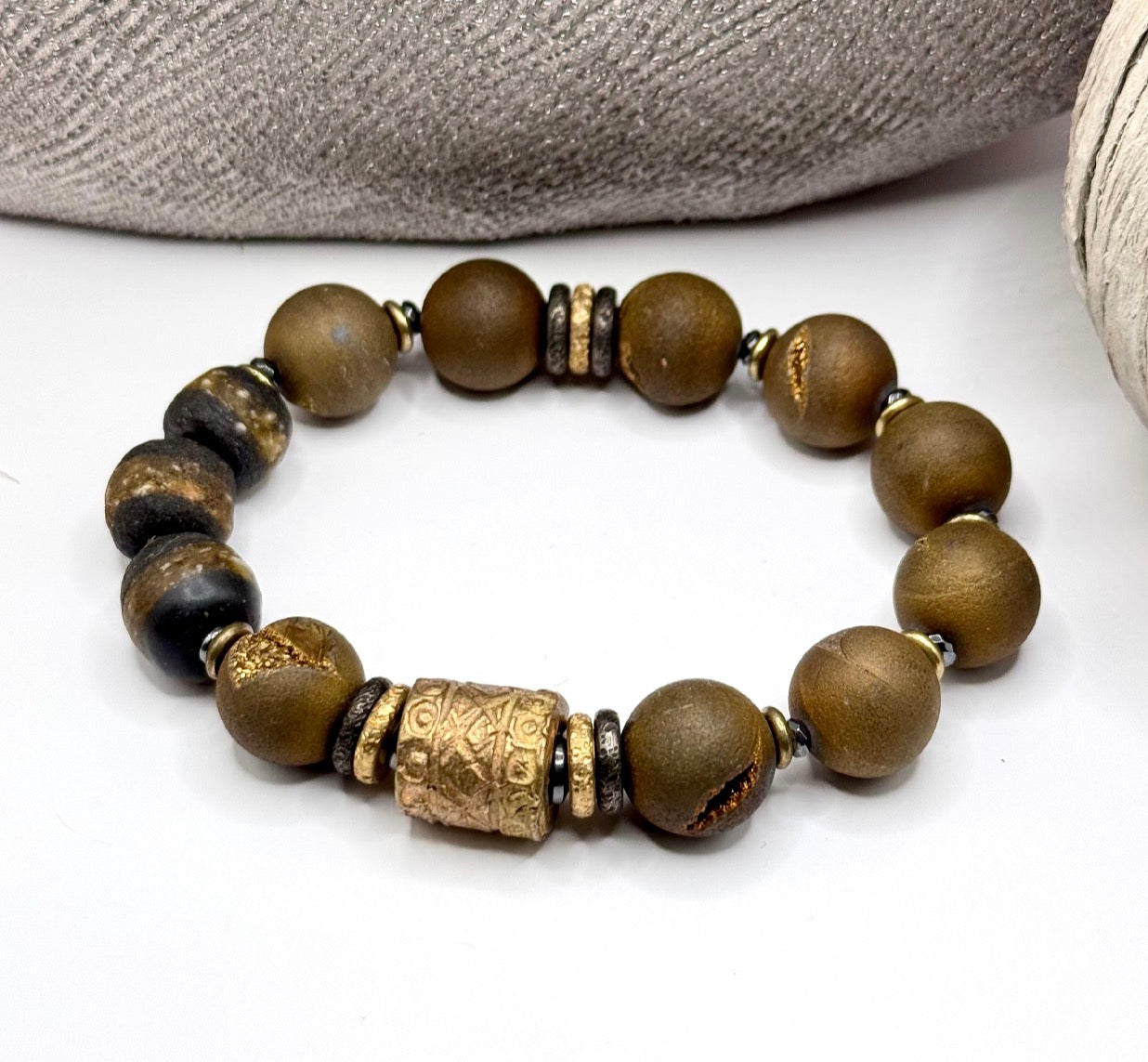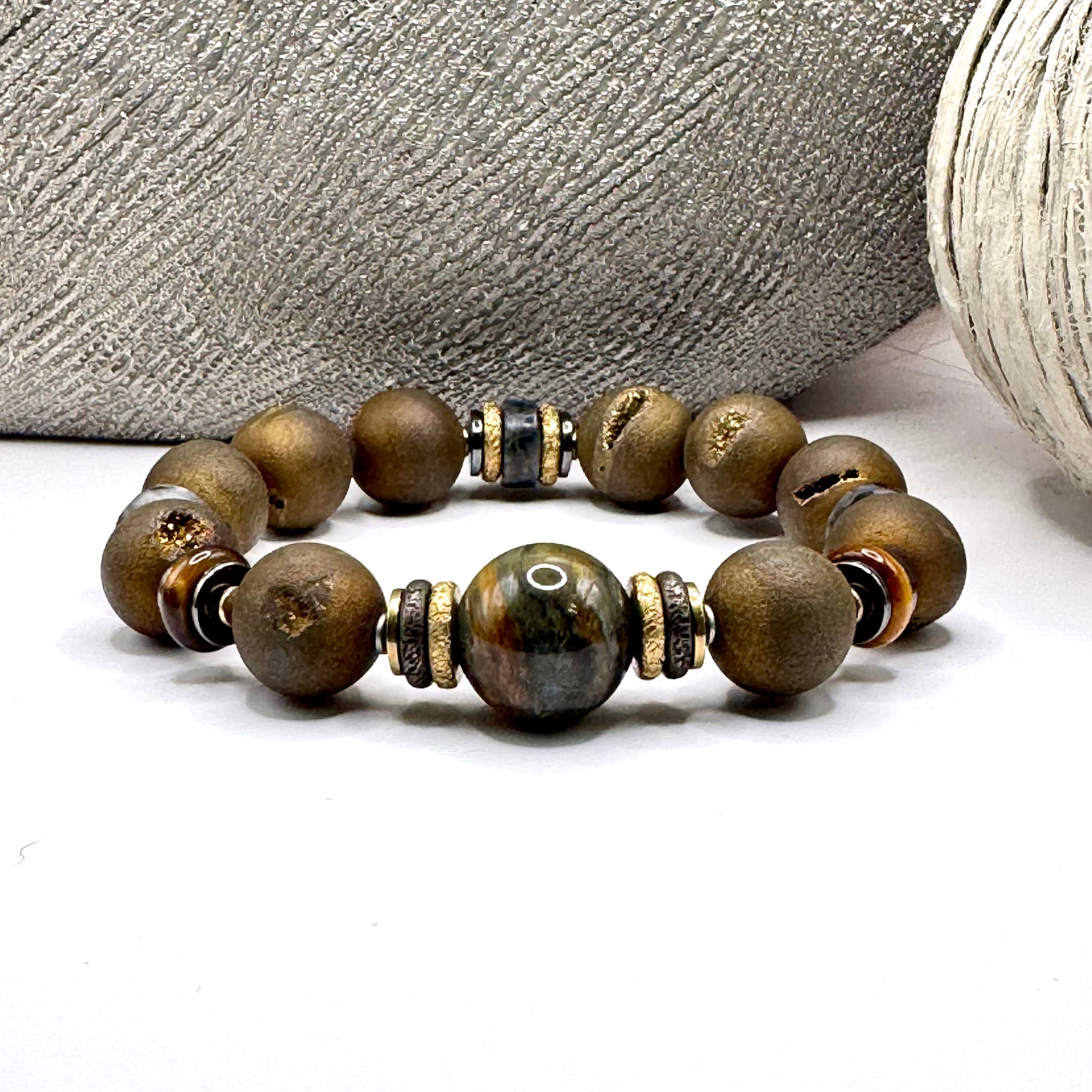 14mm gold Druzy Agate with Tiger's Eye focal.
