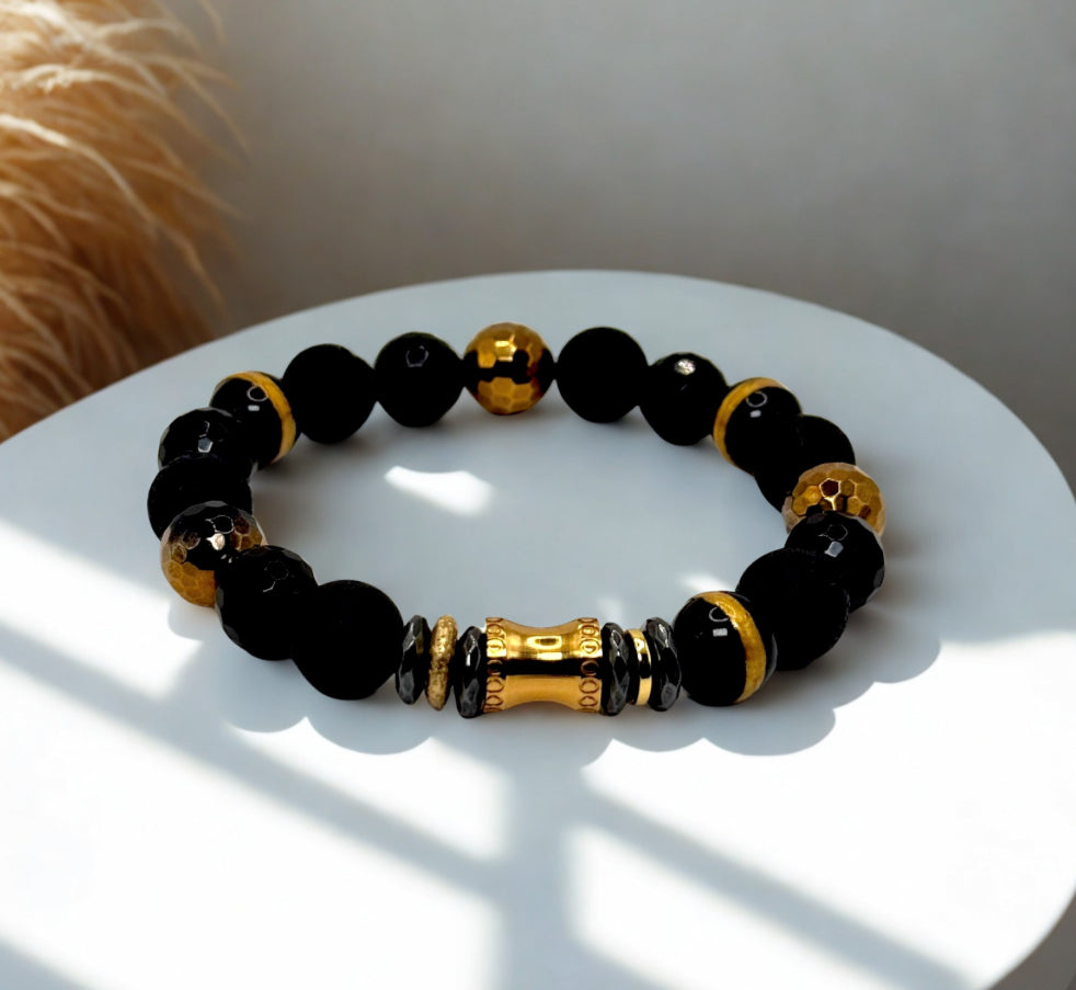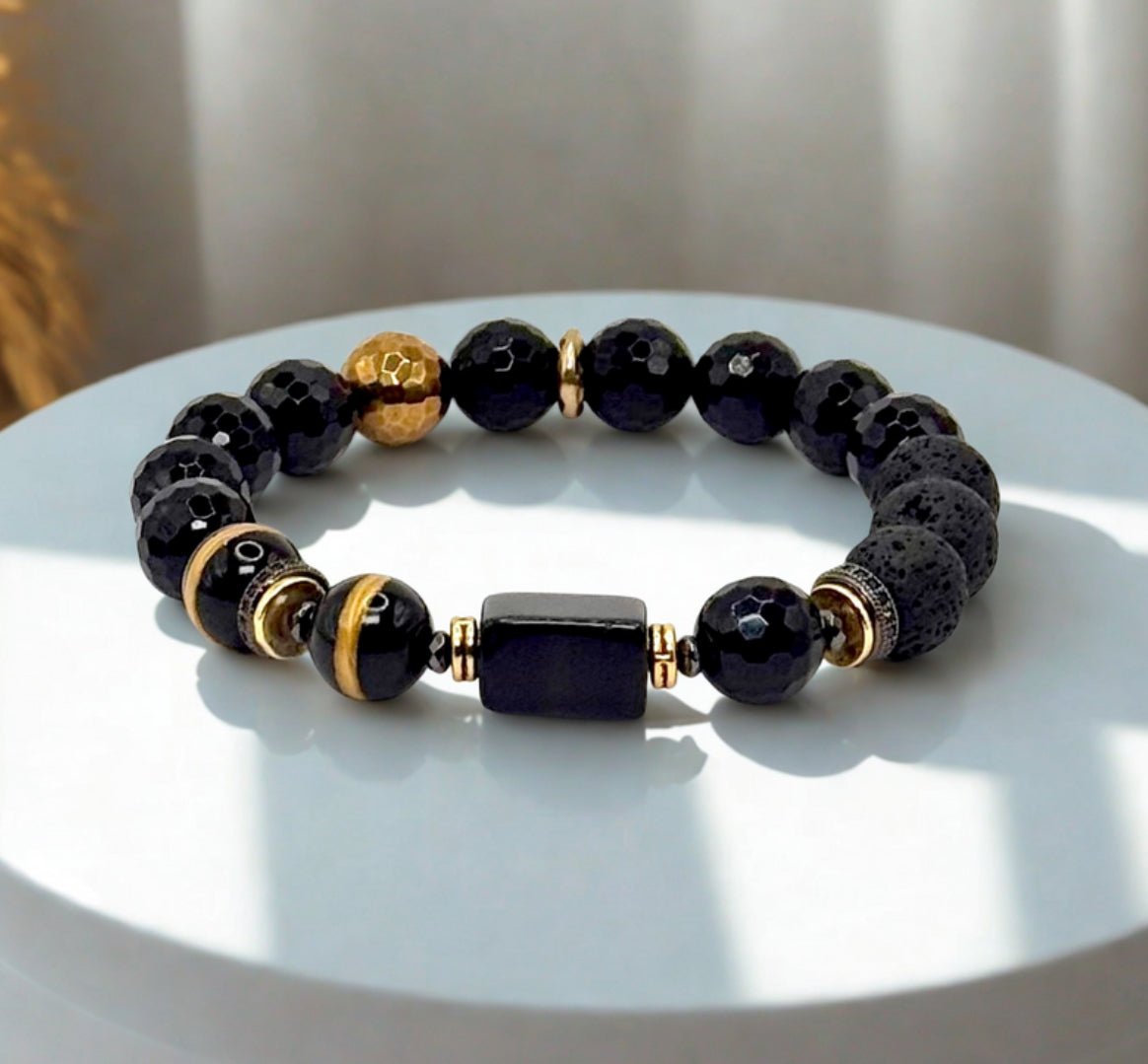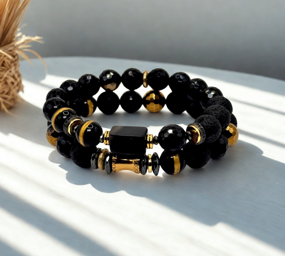 The versatility of this 2 pc bracelet set is truly remarkable. Whether you're attending a formal event, enjoying a day at the beach, or simply adding a touch of style to your daily wardrobe, this bracelet seamlessly adapts to any occasion. Its unique combination of Onyx, Tibetan Agate and Lava Rock makes it a versatile accessory that can elevate any outfit, from casual to formal.
