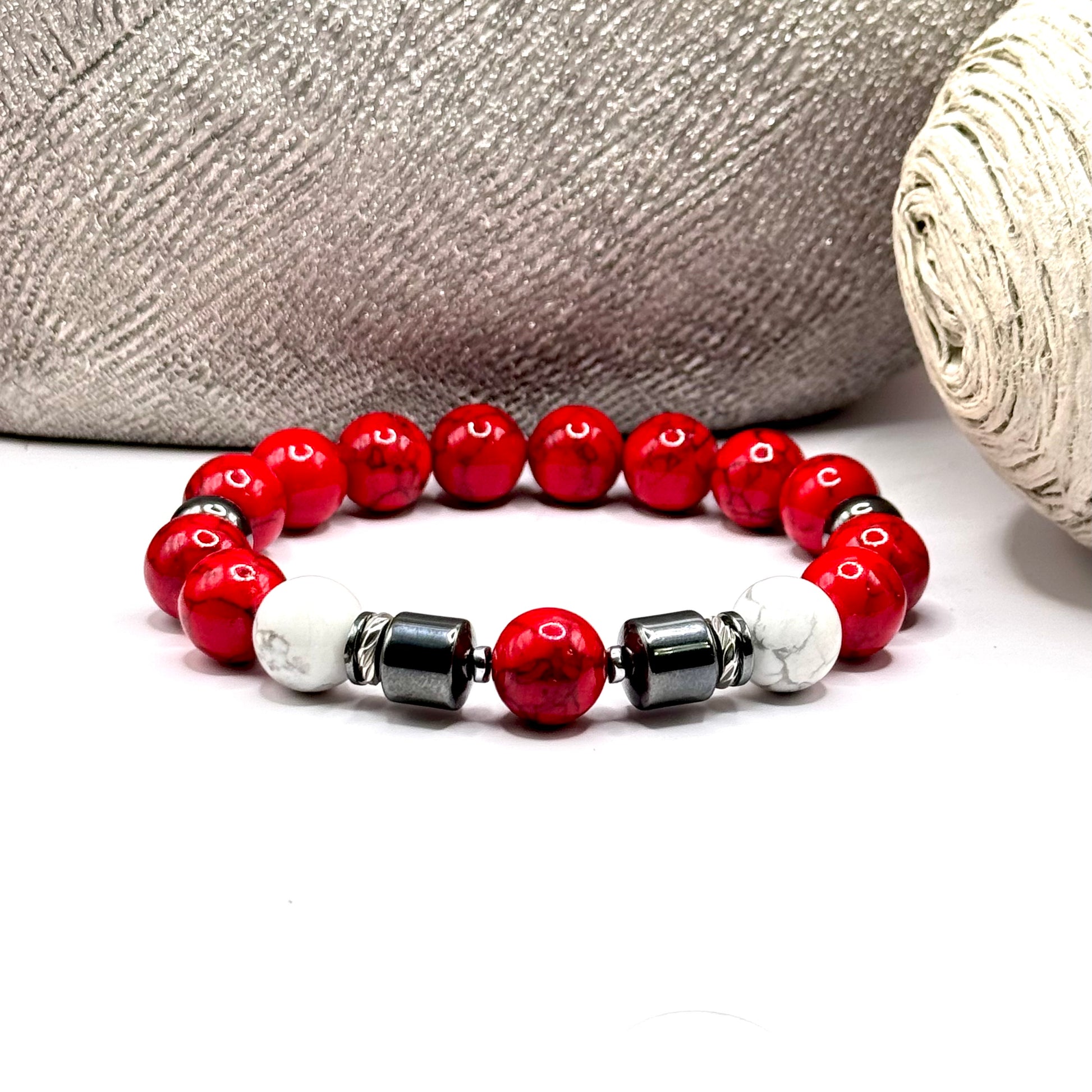 'The Pinnacle 2'. Crafted with care using natural & heat treated Howlite gemstones, this handcrafted piece brings elegance and style to every outfit.