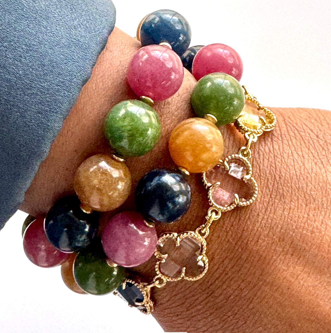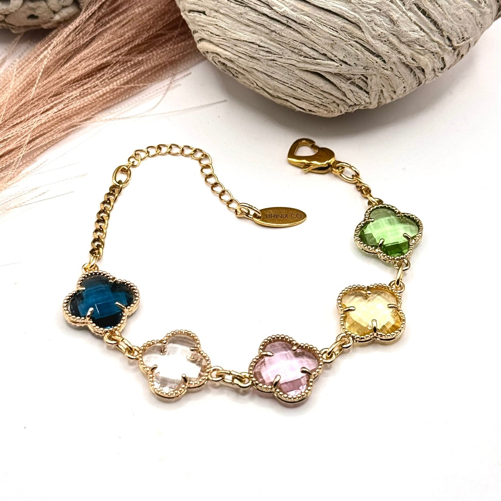 This listing is for one 18k gold plated link chain clover bracelet in stunning Spring colors.