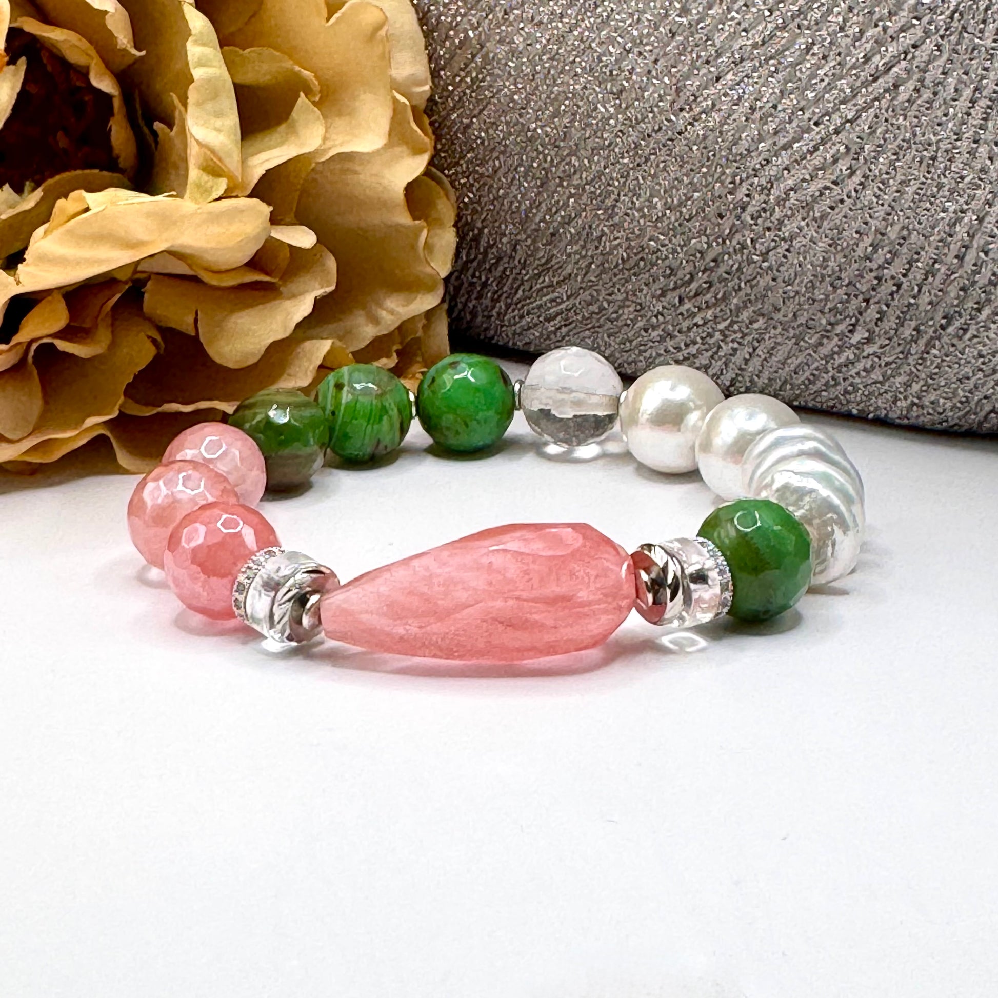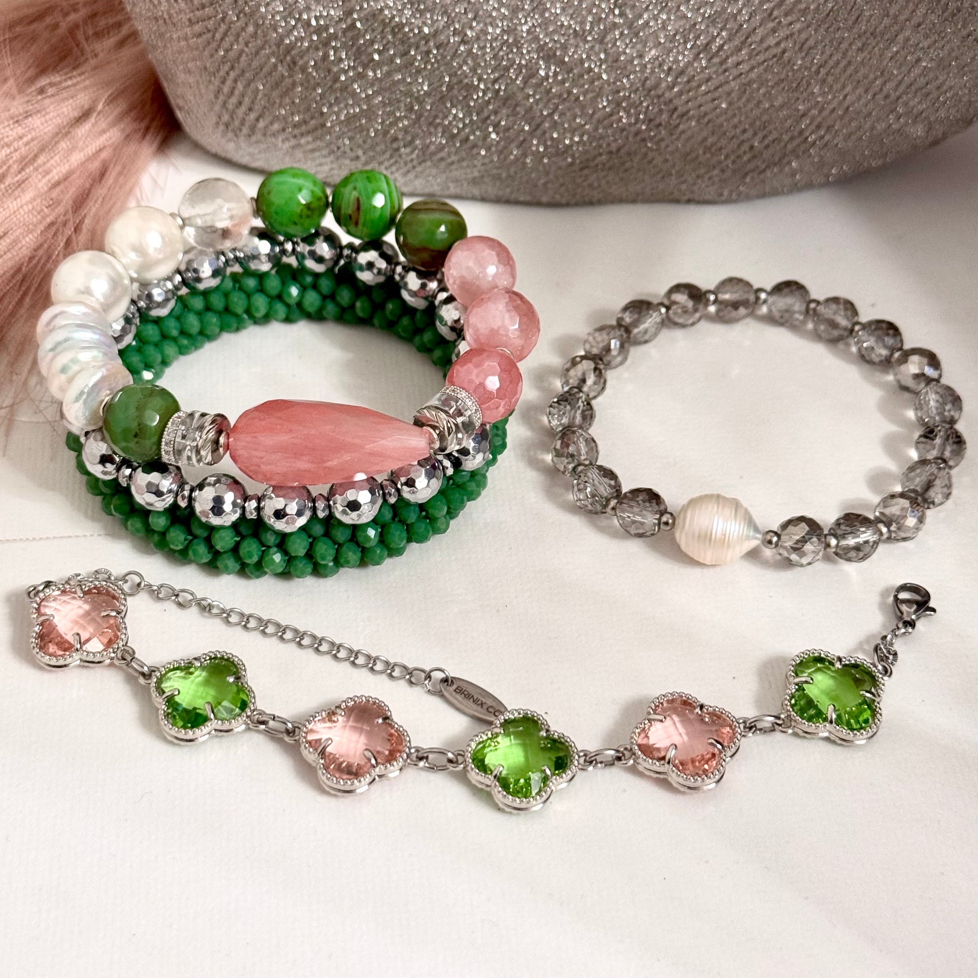 The Pretty Girl Collection features 8 & 12mm beads and the following gemstones: Agate, Shell Pearl and Hematite.