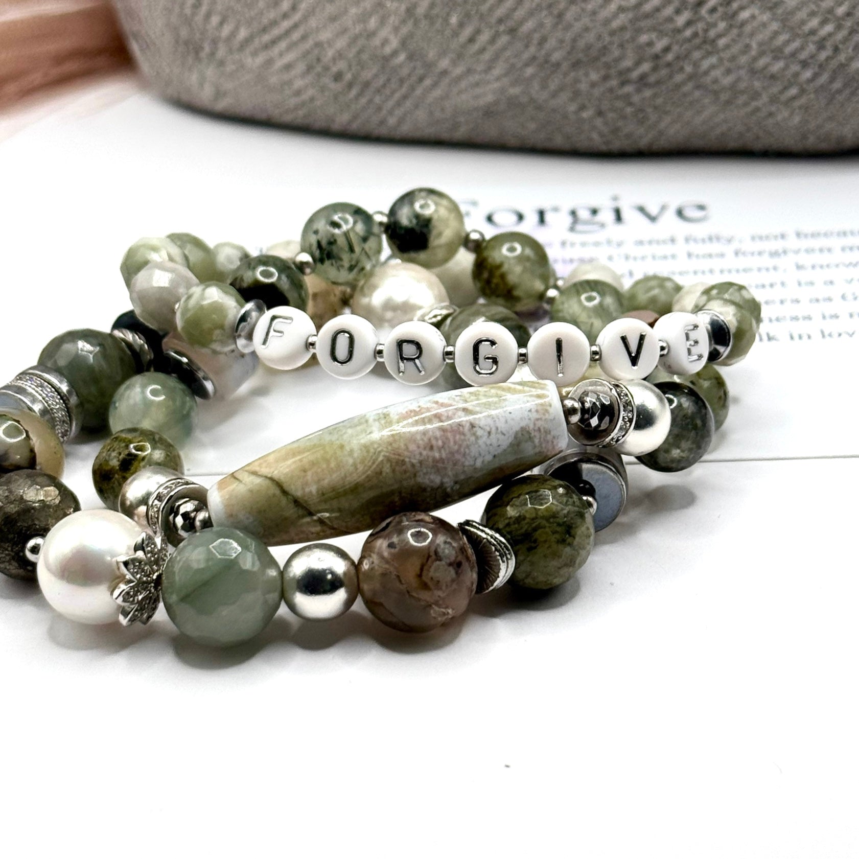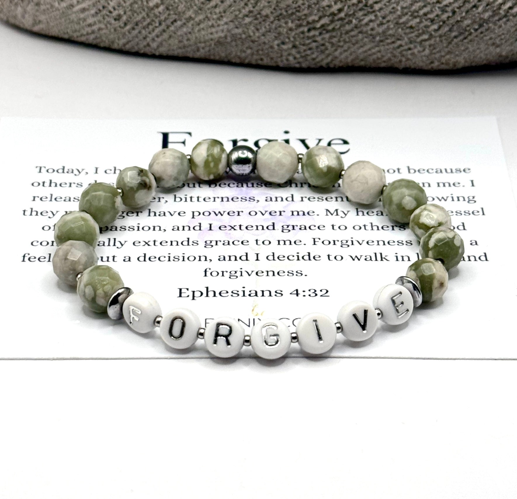 Forgive beaded bracelet with affirmation card included to declare truth over your life.